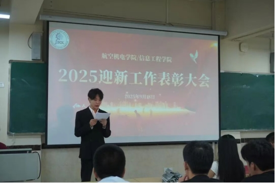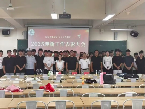 2025年9月18日中午12:30分航空机电学院/信息工程学院于教学楼A401圆满举办2025迎新工作表彰大会。