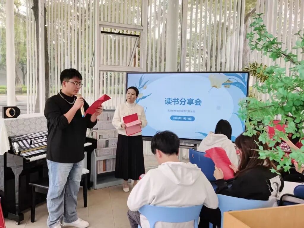 2025年12月19日,航空机电学院/信息工程学院邀请陈静老师,在湖畔书屋为我院学子开展一场别开生面的读书分享会——树懒式关怀:在阅读中学会“慢下来”的智慧。分享的书籍为《一支树懒的自我关怀》。