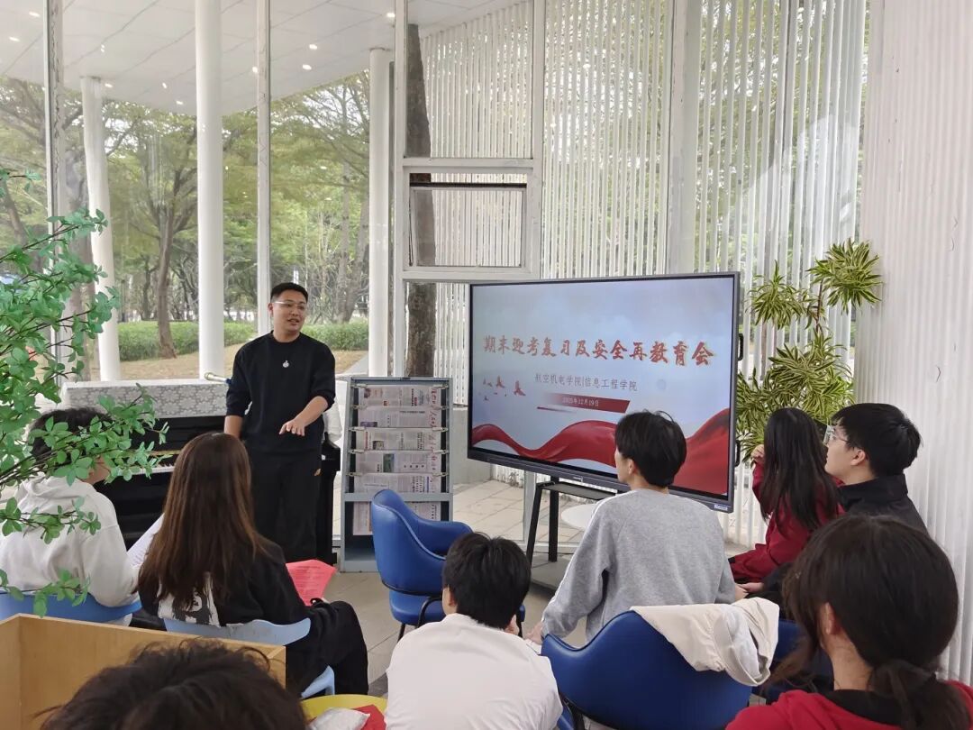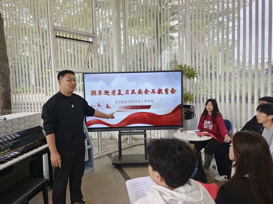 为引导学生认真备考、诚信考试,培养学生诚实守信优良品质,进一步增强学生暑假安全、法治意识,2025年12月19日在湖畔书屋航空机电学院/信息工程学院开展2025-2026学年第一学期期末考试动员暨假期安全教育大会。
